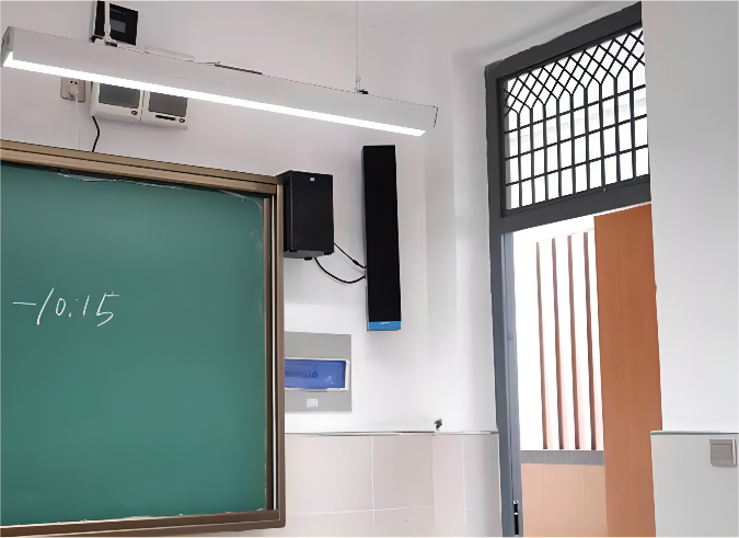 另外,教室音響的教學級專業擴聲揚聲器部分采用的是一體化設計,黑色木紋邊框,集多功能于一體,可實現聲音精準區域覆蓋??砂惭b在黑板的一側,安裝簡單,使用便捷,配套的無線麥克風即連即用。