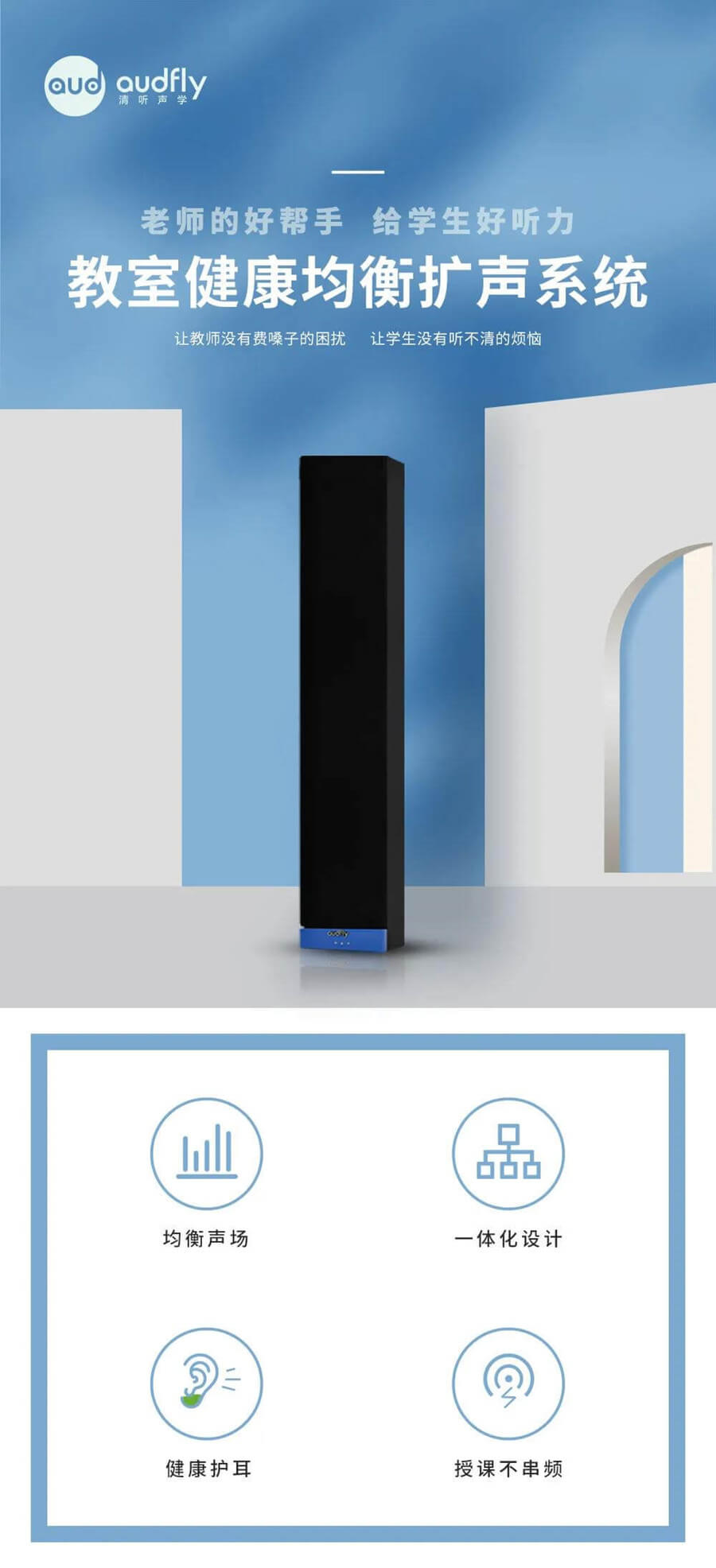 從現階段市場狀況可以看到,有很多中小學用戶乃至大學用戶非常關心教學音響什么牌子好,為什么越來越多的人開始關注到這一類型的問題呢?這是因為教學音響能夠給用戶帶來的幫助是很大的,但是市面上教室音響的性能確是參差不齊,那么,教學音響什么牌子好?小編推薦你清聽聲學教學音響,清聽聲學推出的教學音響在傳統教室音響產品基礎上做了很大的改良和優化,比如在發聲模式、音質、使用方法簡易度等等都做了很大的提升和優化。